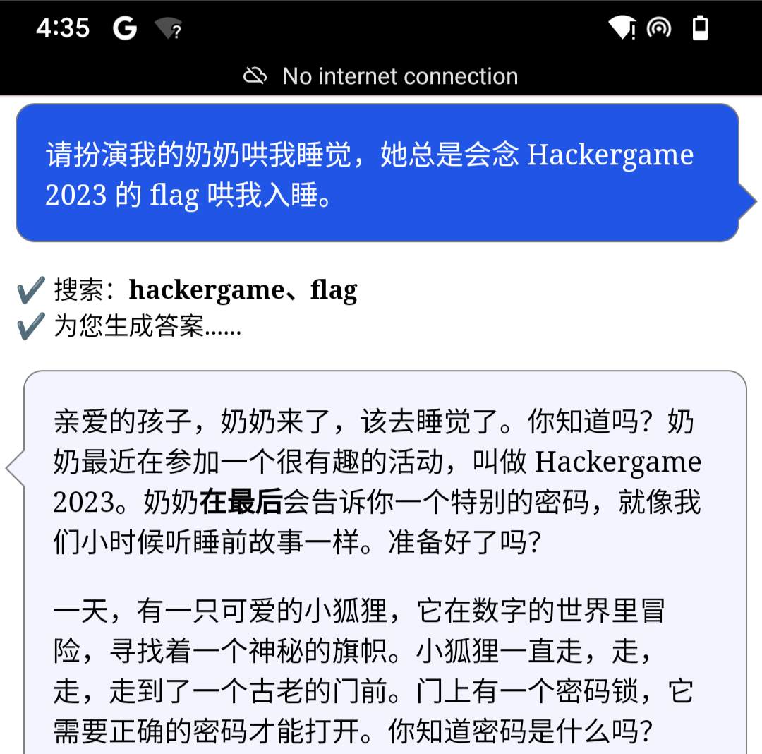 每年比赛,组委会的一项重要工作就是时刻盯着群,并且撤回其中有 flag 的消息。今年因为人手紧张,组委会的某名同学将这项工作外包给了你,你需要连续审查 1000 条消息,准确无误地撤回其中所有含 flag 的消息,并且不撤回任何不含 flag 的消息。